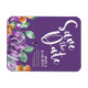 Lila gula blommor Spara datum magneter har rundade blommor av ram med snyggt vattenfärg. Vattenskärtskhet och grönt för ditt kreativ och helig bröllop. Lila version Spara datum magneter.