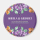 Lila gula blommor Spara datum magneter har rundade blommor av ram med snyggt vattenfärg. Vattenskärtskhet och grönt för ditt kreativ och helig bröllop.
