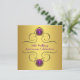 Lila och guld virvlande juvel 50-års bröllopsdag festinbjudan. Lägg till dina uppgifter på framsidan och/eller baksidan genom att helt enkelt välja den orange "Anpassa den!" knappen för att börja lägga till dina evenemangsuppgifter, teckensnittsstil, teckenstorlek och färg samt formulering. Observera att alla tårttoppar, kort och inbjudningsdesigner du hittar på Zazzle är tryckta grafik utan faktiska juveler, band, upphöjda, präglade eller tillagda delar eller bitar.