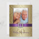 Fira er bröllop-årsdag i stil med den här elegant guld-effektens damm 50 Bröllop-årsjubileum Inbjudan till lila färg. Dessa inbjudningar till snyggten är en fantastisk blandning av traditionella och moderna idéer. På kortets framsida byter du ut exempelfotot mot ett par nu för bild eller lägger till bröllop-fotot för 50 år sedan. Datorgrafik ge det här kortet är ett 3D-utseende även om satin, diamantbrok och guld nummer 50 bara är en fotobild som trycks på kortet. Ordna på vit papper som visas så att all designinformation visas. Lägg till din 50-årsbjudandeinformation och OSA text på baksidan. Detta kort komar INTE med några förringningar. Allt du ser är utskrivet på ett platt kort yta. Vill du ha ett annat menyfliksområde i färg eller hjälp med din inbjudan? Kontakta luxuryweddinginvitations@gmail.com. Utformning av Elke Clarke© 2012 för Monogram Gallery. Grafik licensierad.