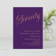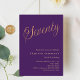 En modern inbjudan till snyggt för 70:e födelsedagsfesten. Lila färgad och ord 70 skrev med elegant brev i faux guld. Anpassa och lägg till information om namn och party.