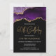 Den här eleganten, 60:e födelsedagsfest inbjudan, har en vattenfärgsbild av en agate-geod i skuggor av lila med faux guld-högdagrar. "60:e födelsedagen" i ord visas i faux guld glitter i dekorativt modernt handskriftsteckensnitt. Anpassa den med heoträdets namn i guld färgad och detaljerna i vitt. Samma lila agate-bild visas på baksidan.