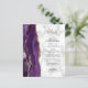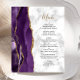 Den vänstra kanten på denna eleganta moderna bröllopsmeny har en lila akrylfärg agat kantlist dekorerad med falskt guld glitter. Den anpassningsbara texten kombinerar guldfärgad handskriven script med svart kopparplåt teckensnitt på en grå och vit marmorerad textur bakgrund. Baksidan har en matchande lila och guld agat design.