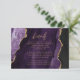 Detta eleganta moderna bröllopsdetaljer bifogas kort har en lila akvarell agat bakgrundsbild med falskt guld glitter. Titeln visas i handskriven skrift med anpassningsbar text nedan i guld-färgad kopparplåt font. Baksidan har en matchande lila och guld agat design.