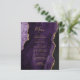 Den moderna bröllop-menyn i elegant har en lila vattenfärgsagat gräns som trimmas med faux guld glitter. Anpassadet kombinerar handskriftsskript för guld-färgad och kopparplåt typsnitt. Den omvända sidan har en matchande lila- och guld-agate-design.