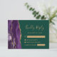 Det moderna djurutrymmeskortet i elegantens lämnat kant har ett lila vattenfärgsagat i gräns som trimmas med faux guld glitter. Rubriken "Kinly Reply" visas i handskriftsskript, med anpassade nedanför i guld-färgadens typsnitt på en bakgrundsbild av grönten. Den omvända sidan har en matchande lila- och guld-agate-design.