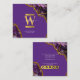 Lila & Guld Agate Geode Glitter Monogram Marble Fyrkantigt Visitkort