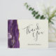Den här eleganten är ett modernt bröllop-tack som du har ett lila vattenfärgsagat i gräns som trimmas med faux guld glitter. I anpassadet kombineras ord "Tack" i handskriftsskript för kol-grått och namnen för bruden och groomen i kursivt teckensnitt på en elfenbensbakgrund. Lägg till ditt eget personliga meddelande på den tomma baksidan.