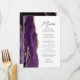 Den moderna bröllop-menyn i elegant har en lila vattenfärgsagat gräns som trimmas med faux guld glitter. Anpassadet kombinerar handskriftsskript för kol-grått och sans serif typsnitt på vit bakgrund. Lila och guld agate-konstruktionen upprepas på baksidan.