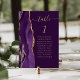 Det moderna kortet för bordsnummer i bröllop som är lämnat kant i eleganten har en lila vattenfärgsagat i gräns som trimmas med faux guld glitter. Ord "bord" visas i handskriftsskriptet guld-färgad på en plommonbakgrund för rik. Lägg till namnen för de gäster som tilldelats varje bord.