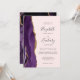 Den lämnat kant i eleganten i den moderna bröllopsinbjudan har en lila vattenfärgsagat gräns som trimmas med faux guld glitter. I anpassadet kombineras handskrift, tryckplåt och kursivt typsnitt i grått med kol på blekens rosa-bakgrund. Den omvända sidan har en matchande lila- och guld-agate-design.