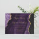 Den här eleganten är en modern bröllopsinbjudan med en lila vattenfärgsbakgrund som har trimmat med faux guld glitter. Anpassadet kombinerar guld-färgadens moderna skript, kopieringsskylt och kursivt typsnitt. Den omvända sidan har en matchande lila- och guld-agate-design.