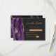 Det moderna djurutrymmeskortet i elegantens lämnat kant har ett lila vattenfärgsagat i gräns som trimmas med faux guld glitter. Rubriken "Kinely Reply" visas i skript, med anpassade text nedanför i guld-färgad sans serif-teckensnitt på en svart bakgrund. Den omvända sidan har en matchande lila- och guld-agate-design.