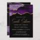 Eleganten Sweet sixteen har en vattenfärgsbild av en agate geode i lilans nyanser med markeringar från Faux guld glitter. Ord "Sweet sixteen" visas i ett modernt handskriftsskript i guld-färgad. Anpassa den med heoträdets namn i guld-färgad-texten och detaljer i vitt på svart bakgrund. En matchande lila- och guld-agate-design visas på baksidan.