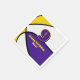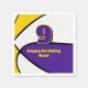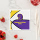 Den här basketbollens tema party napkin för en basketbollfödelsedag eller ett team party har bilden av en basket som har växlande lila-, vit- och guld-paneler - anpassa texten i lila och guld - av katz_d_zynes