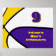 Den här poster för välkomsttagning av basketbollens tema för födelsedagsfest är fullt anpassade och har den abstrakt överdimensionerade bilden av en basket som har växlande lila-, vit- och guld-paneler - anpassa detaljerna för party i lila och guld - efter katz_d_zynes