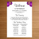 Detta "programmärke för Lila/Guld Blommigt Bröllop Ceremony" ger respit och stil till ceremonin i bröllop. Den här programsignalen är designad för att hjälpa dina gäster att följa med i förhandlingarna. Ordna idag!