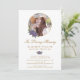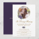 Elegant lila och guld blommigt minnesstund/firande i livs-/begravningsinbjudan med ett foto inuti guld ram, försedd med lila vattenfärgen ro.