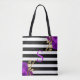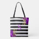 Lila Guld Blommigt Monogram Black White Rand Tygkasse