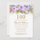 Lila Guld Blommigt Ro 100:e födelsedag Inbjudningar