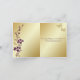Denna vackra lila och guldblommiga bröllopstakksedeln har guld FAUX glitter (simulerade) fjärilar och lila blommor som matchar den nedan visade bröllopsinbjudan. Du kan också välja en storlek på 5x7 om du vill ha något större. Om du behöver några andra matchande föremål, vänligen maila din förfrågan till niteowlstudio@gmail.com.