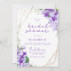 Inbjudan gäster i stil med den lila guld-geometriska blommigten i inbjudningskort för möhippan. Med blommigtar för elegant vattenfärg, ett modernt guld-geometriskt ram och chic-typografi är den här utformningen perfekt för sofistikerat firande, trädgård eller rustik möhippa.
