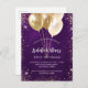 Lila guld glitter-ballonger från födelsedagen inbjudan vykort