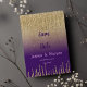 En lila, lavender handskriven manusgrafi med modern typografi med lila och guld glitter är en stor lyx bröllop spara datum. Den här elegantens monogramdesign är perfekt för en trendig- och snyggt party-händelse. Anpassa den här designen med information om meddelande och personlig. Alla designer skrivs ut.
