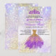 Söt och feminin quinceanera-inbjudan innehåller en lila och guld boll och tiara på en holografisk gnistra.