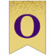 Lila och guld sparkar studentfest 2-foton som buntar flaggor-mall. Banderollbanderollen "Gratulerar Grad!" med mousserande studentfest glitter.