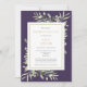 En elegant personlig firande av begravningsminnesinbjudan med botaniska vattenfärger grönt löv på lila bakgrund. Designad av Thisisnotme©