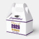 Anpassa din egen lila och guld high school Klass 2026 examensfest presentlåda för en högskoleexamen fest. Coola universitetsbokstäver för året på fantastiska anpassade etiketter för seniorpresentlådor.