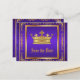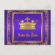 Lila och guld spara datum postkort med vacker guld krona på en rik lila och guld virvlingsbakgrund. Du kan lägga till dina evenemangsuppgifter i den teckensnittsstil och färg du väljer.
