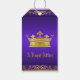 Lila och guldfärgade presentkort med vacker kunglig krona på en rik lila och guldfärgad virvlande bakgrund. Du kan lägga till text för att anpassa dessa eleganta kungliga lila och guldfärgade fest- och evenemangspresentkort med den text du väljer i den typsnittsstil och färg du föredrar.
