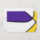 Denna inbjudan till basketfest med lagfärger har en abstrakt stor bild av en basketboll med omväxlande lila, vita och gyllene paneler - anpassa festdetaljerna i lila och guld - av katz_d_zynes