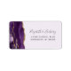 Den lämnat kant i eleganten med den moderna bröllop OSA-självadressetiketten har en lila vattenfärgsagat gräns som trimmas med faux guld glitter. Anpassadet innehåller namn i handskriftsskript för kol-grått och adress i typsnitt på lavender-bakgrunden.