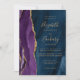 Den här elegantens moderna bröllopsinbjudan innehåller en lila vattenfärgsagatdesign som trimmas med faux guld glitter. Anpassadet kombinerar handskrift, rityta och kursivt typsnitt med guld-färgad på en marin blå vattenfärgsbakgrund. På baksidan finns utrymme för information om bröllop på en matchande marin blå agate-bakgrund, tillsammans med en QR-kodgäst som kan skanna för att besöka webbplatsen och OSAN, vilket sparar kostnaderna för att skriva ut och skicka separat OSA kort.