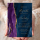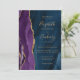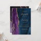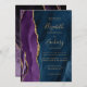 Den här elegantens moderna bröllopsinbjudan innehåller en lila vattenfärgsagatdesign som trimmas med faux guld glitter. Anpassadet kombinerar handskrift, rityta och kursivt typsnitt med guld-färgad på en marin blå vattenfärgsbakgrund. Den omvända sidan har en samordnande lila och guld agate-utformning.