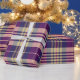 Lila, gyllene gulter och blå tartandesign. Sömlös mönster.