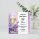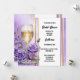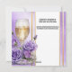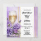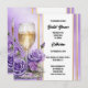 En vacker, livfull och lyxig lila bakgrund har ett glas mousserande vin på den med blommor från söt lila ro i fullt i blomning. För glasets höger är en vit inläggning som gränsar till lodräts gyllene band. Svarta textmallar finns på inlägget för anpassningsbarnas ordalydelse. Baksidan har samma design med ytterligare mallar för extra-information som du kanske vill att dina gäster och din familj ska veta. Om det inte behövs stryks formuleringen för att lämna dem tomma. Den här snyggten, den moderna utformningen av elegant och trendig är perfekt för alla möhippor, födelsedagar eller quinceanera firande. Spola bort bruden som ska vara med den här skräddarsydda och tidslösa fyrkantiga inbjudan