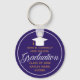 Denna söt lila-anpassningsbar med högre nyckelstatus i studenten har chic vit och guld typografi under högskola eller högskola namn för 2025 års klass. Anpassa med ditt utbildningsår under elegantens kalligrafi för en nyckelring av underbar personlig student.