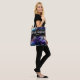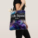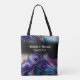 Brudtjejer har mycket att bära och denna eleganta väska rymmer allt. Lila, guld, svart och turkos accentuerar denna vackra design som säger 'brudgäng' med brudtjejens namn på framsidan, och brudens och brudgummens namn och bröllopsdatum på baksidan gör att väskan blir en minnessak i många år framöver. Alla ord är anpassningsbara.