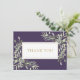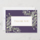 En elegant minneshögtid för begravning tackkort med botanisk akvarell grönska blad på en lila bakgrund som ramar in ditt tackmeddelande i modern typografi. Du kan anpassa med ditt eget tackmeddelande på baksidan. Ett perfekt sätt att säga tack! Designad av Thisisnotme