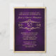Denna formella inbjudan till bröllopsjubileum har en gyllene siffra 50 infattad i en hjärtformad gyllene ram på en elegant, brännsvart mörkt kungligt purpurfärgad bakgrund. Den anpassningsbara texten är också i guld, med bilden och texten infattade i en matchande gyllene ram. Baksidan av inbjudan har en matchande brännsvart purpurfärg. Guld och purpur ser fantastiska ut tillsammans! **Observera att bilden är tryckt på kortet, som inte innehåller någon metall.**