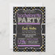 Bachelorette Party inbjudan med retro chalkboard-utseende på svart, mörk grått och gult stjärnor mönster med lila ric Rack design inslag och krita utseende typsnitt.