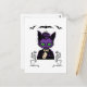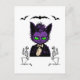 Lila Halloween Katt med Fladdermus och Skeleton Vykort