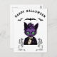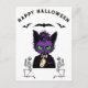 Lila Halloween Katt med Fladdermus och Skeleton Vykort