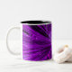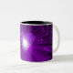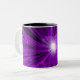 Modern design med strålande, mousserande lila och vitt hjärta på en glödande lila, vit och svart bakgrund. Mugg med en lila-, svartvitt-anpassade som du kan anpassa med din egen text, bilder och dina idéer. Skapat av Jess Perry med hjälp av originalfotografier och digitala tekniker.