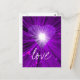 Modern design med strålande, mousserande lila och vitt hjärta på en glödande lila, vit och svart bakgrund. Vykort med lila, svartvitt anpassade som du kan anpassa med egen text, bilder och egna idéer. Skapat av Jess Perry med hjälp av originalfotografier och digitala tekniker.