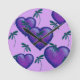 Lila Hearts and Dragonflies Rund Klocka